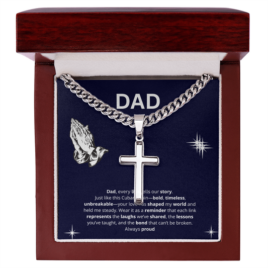 🧢 Dad - Cuban Chain Artisan Cross Necklace with Mahogany LED Box